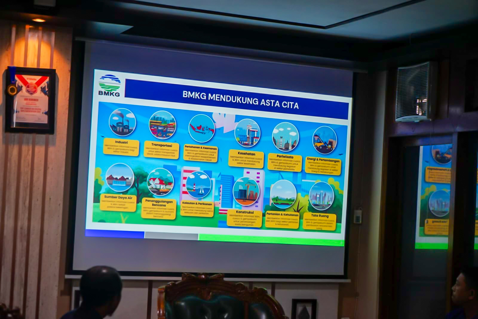 Pertemuan ini membahas penguatan kerja sama dalam adaptasi perubahan iklim serta peningkatan pelayanan informasi dan peringatan dini multi bahaya geohidrometeorologi, termasuk edukasi masyarakat serta dukungan informasi Meteorologi, Klimatologi, dan Geofisika (MKG) bagi pembangunan daerah.
